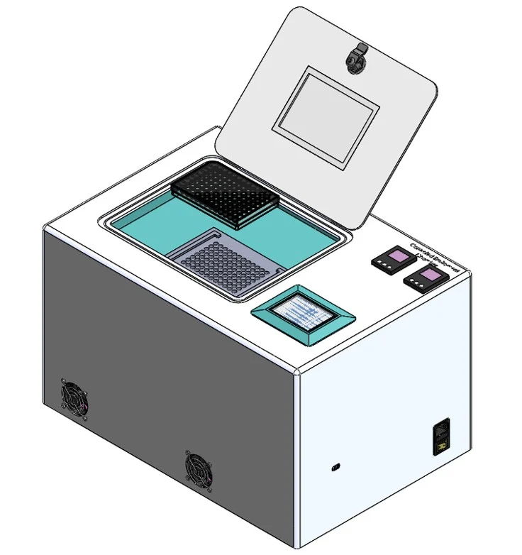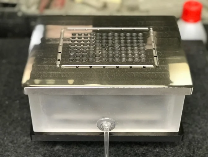 With DARI, researchers will place a standard 96-well plate on top of a collimator in the sample chamber. The collimator includes alignment features to precisely register the location of each well and ensure that the collimated x-ray flux beam for each gets to the right well. The sample chamber may be configured with temperature and atmosphere controls to maintain the environment of biological samples. The user can program the system with a touch screen or a PC interface to irradiate the wells individually, sequentially or in user-programmed groups. X-ray filters can be placed on top of the collimator, across the entire 96-spot array or at individual spots.